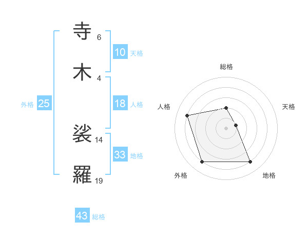 寺木 裟羅さんの外格は25画の4点!
