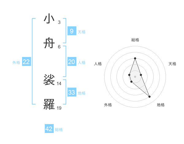 小舟 裟羅さんの外格は22画の1点!