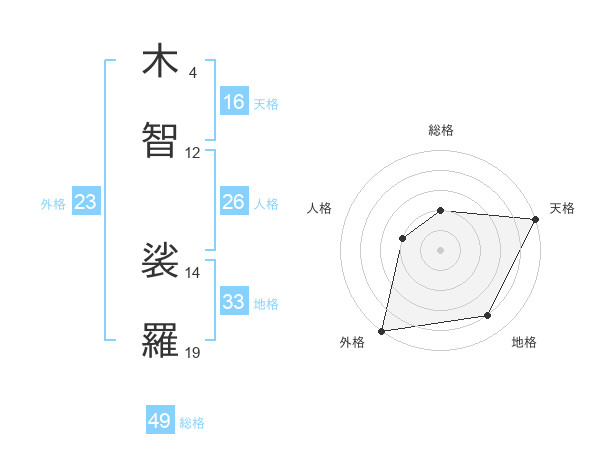 木智 裟羅さんの地格は33画の4点!
