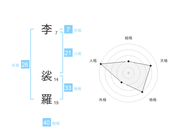李 裟羅さんの天格は7画の4点!