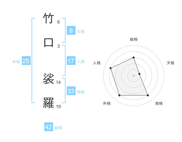 竹口 裟羅さんの外格は25画の4点!