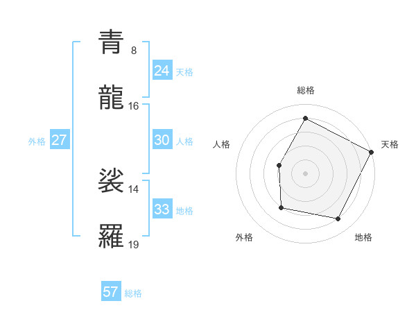 青龍 裟羅さんを姓名の画数から五運を鑑定