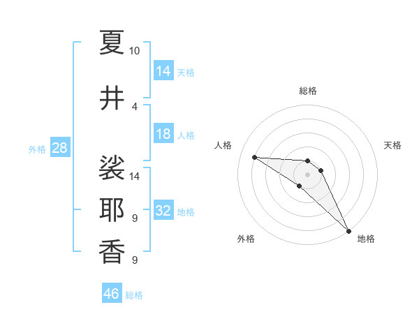 夏井 裟耶香さんを姓名の画数から五運を鑑定