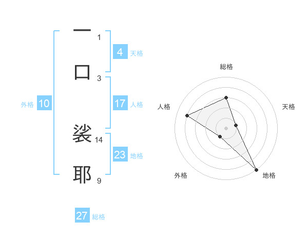 一口 裟耶さんの総格は27画の3点!