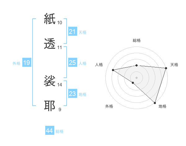 紙透 裟耶さんの総格は44画の2点!