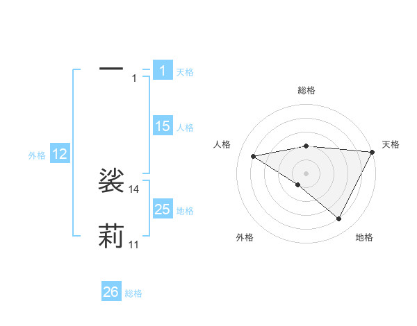 一 裟莉さんの総格は26画の2点!