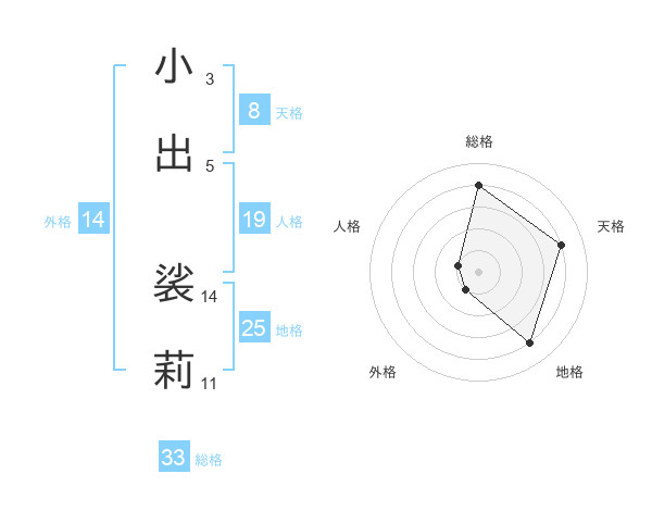 小出 裟莉さんの天格は8画の4点!