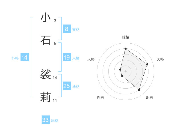 小石 裟莉さんを姓名の画数から五運を鑑定