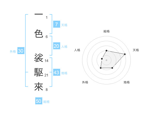 一色 裟駆來さんを姓名の画数から五運を鑑定
