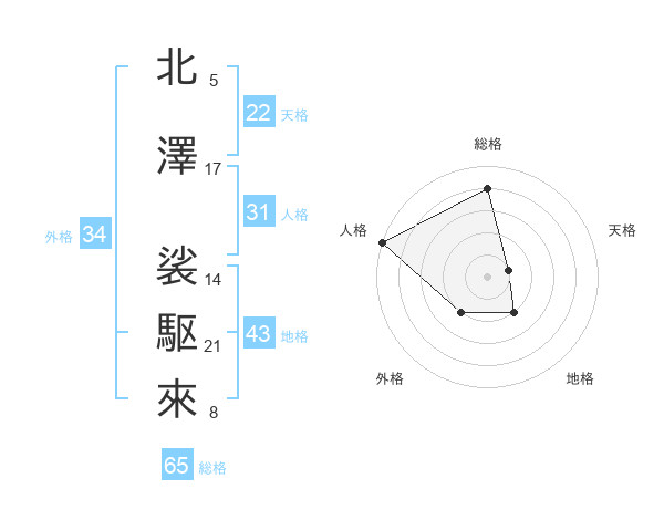 北澤 裟駆來さんの総格は65画の4点!