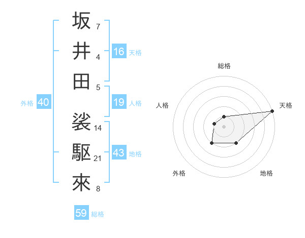 坂井田 裟駆來さんを姓名の画数から五運を鑑定