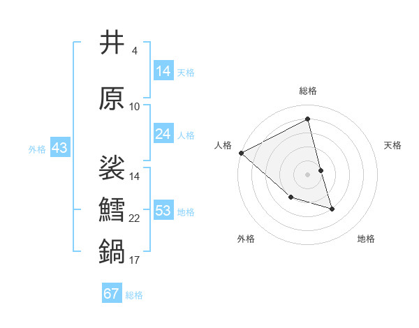 井原 裟鱈鍋さんの総格は67画の4点