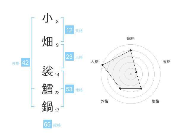 小畑 裟鱈鍋さんの総格は65画の4点!