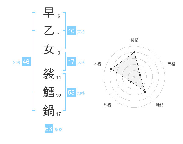 早乙女 裟鱈鍋さんの地格は53画の3点!