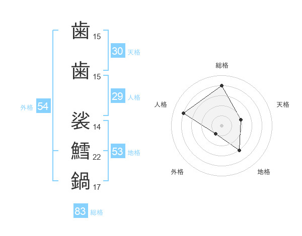 歯歯 裟鱈鍋さんの総格は83画の4点!