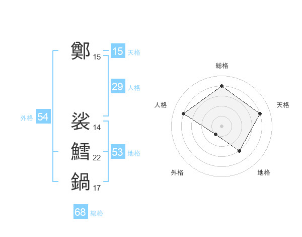 鄭 裟鱈鍋さんの外格は54画の1点!