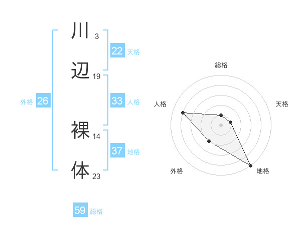 川辺 裸体さんを姓名の画数から五運を鑑定