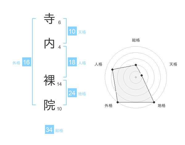 寺内 裸院さんを姓名の画数から五運を鑑定