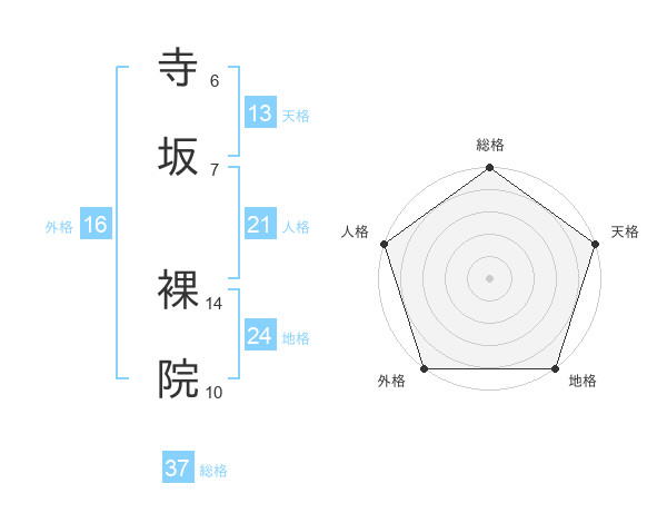 寺坂 裸院さんの総格は37画の5点!