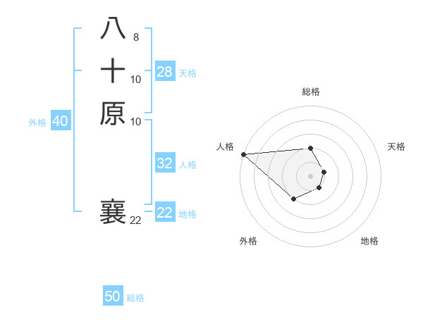 八十原 襄さんの総格は50画の2点!