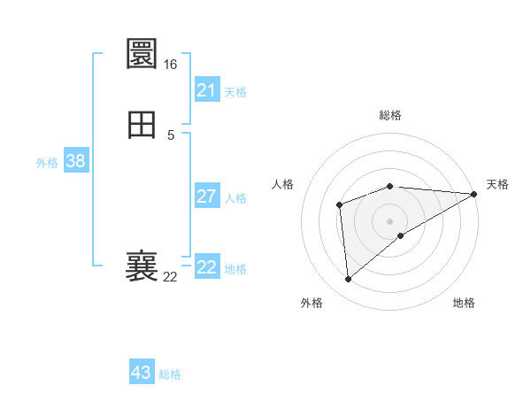 圜田 襄さんの総格は43画の2点