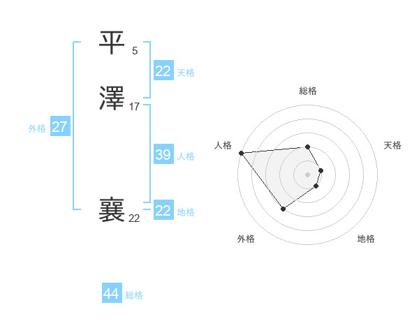 平澤 襄さんの地格は22画の1点!