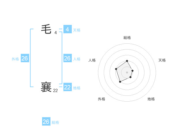 毛 襄さんの総格は26画の2点!
