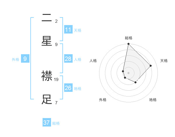 二星 襟足さんの総格は37画の5点!