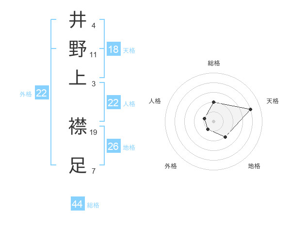 井野上 襟足さんを姓名の画数から五運を鑑定