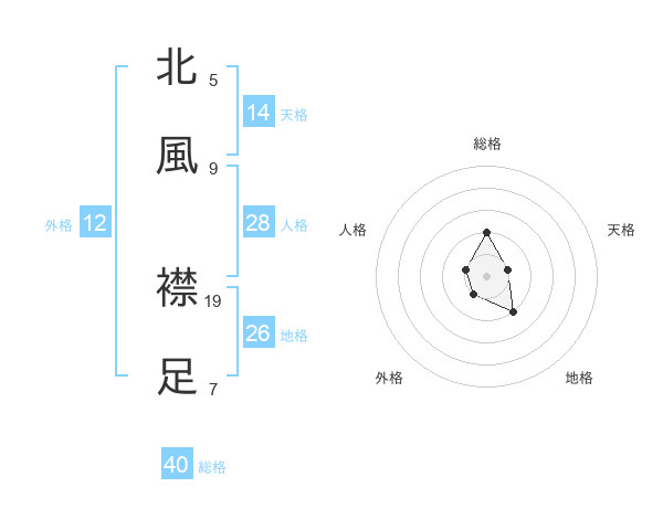 北風 襟足さんの総格は40画の2点!