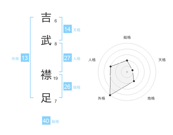 吉武 襟足さんを姓名の画数から五運を鑑定