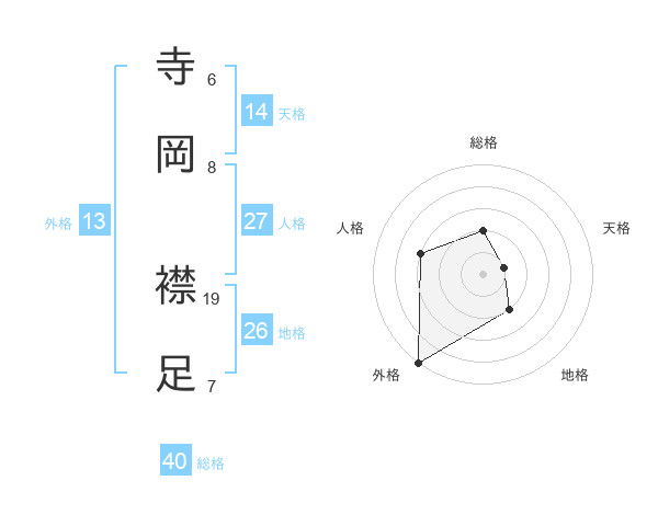 寺岡 襟足さんを姓名の画数から五運を鑑定