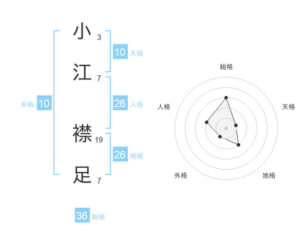 小江 襟足さんの総格は36画の3点!