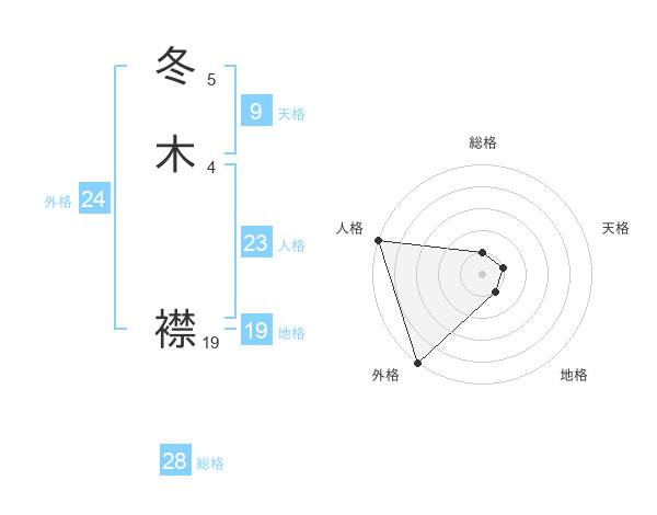 冬木 襟さんの外格は24画の5点!