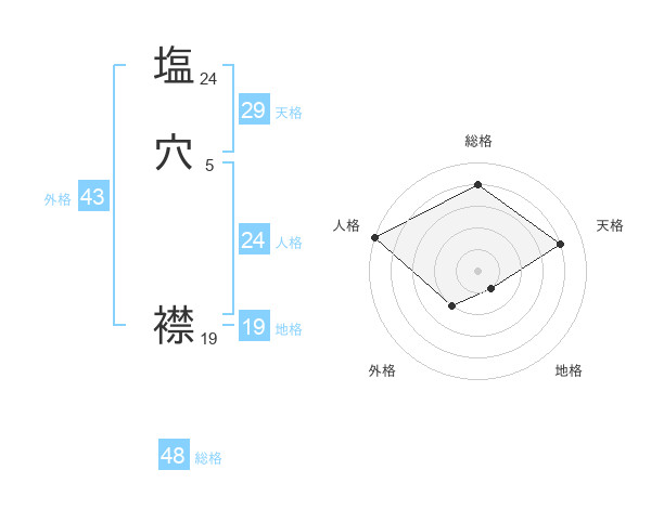 塩穴 襟さんの総格は48画の4点!