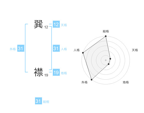 巽 襟さんの総格は31画の5点!