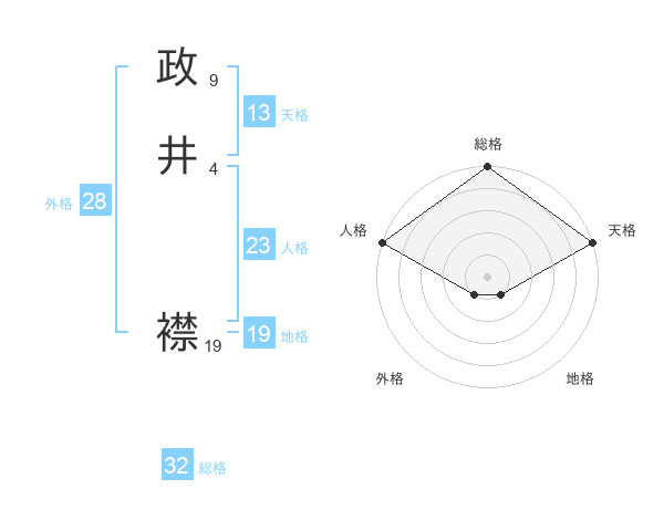 政井 襟さんの総格は32画の5点!