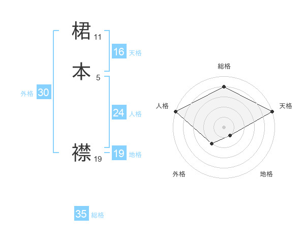 桾本 襟さんの総格は35画の4点!