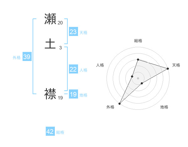 瀬土 襟さんの天格は23画の5点!