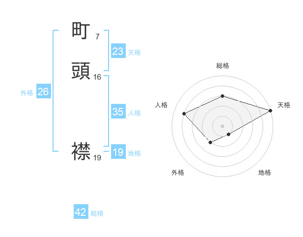 町頭 襟さんの総格は42画の3点!