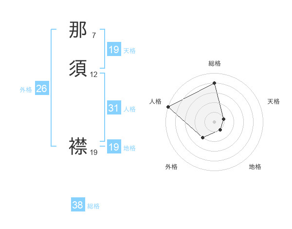 那須 襟さんの総格は38画の4点!