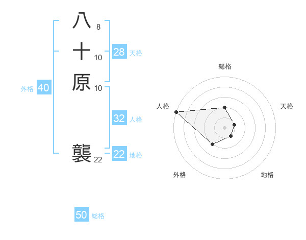 八十原 襲さんの総格は50画の2点!