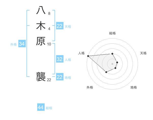 八木原 襲さんの総格は44画の2点!