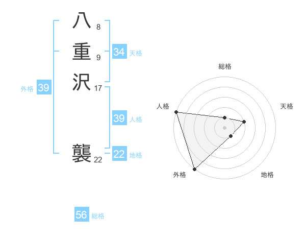 八重沢 襲さんの総格は56画の1点!
