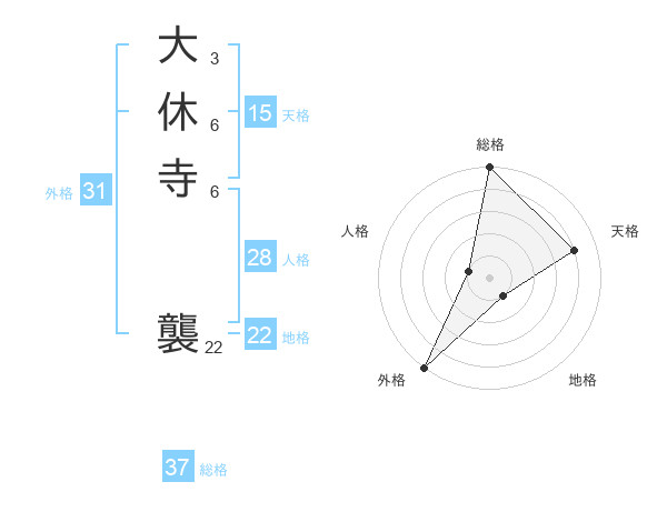 大休寺 襲さんの外格は31画の5点!