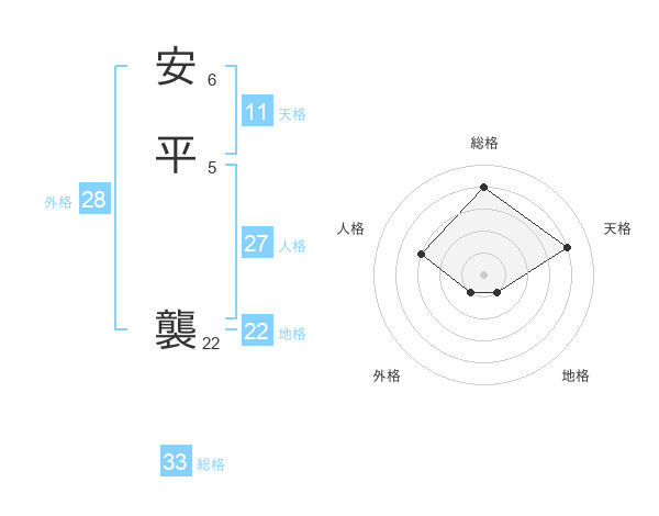 安平 襲さんの天格は11画の4点!