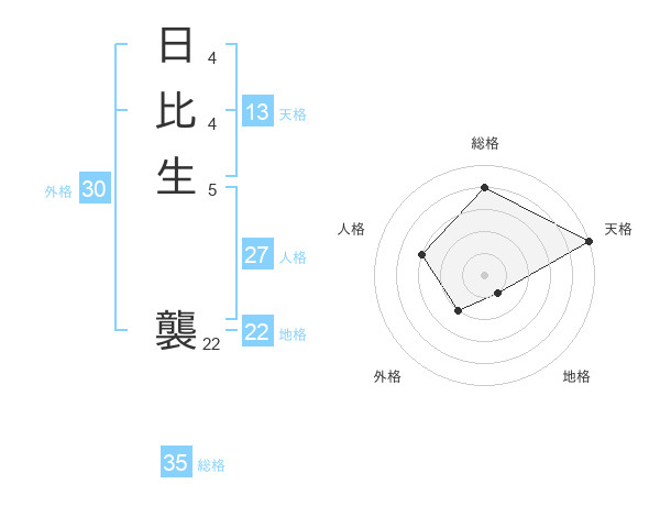 日比生 襲さんの総格は35画の4点!