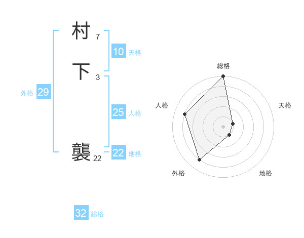 村下 襲さんの総格は32画の5点!