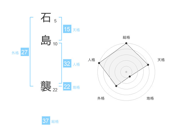 石島 襲さんの総格は37画の5点!