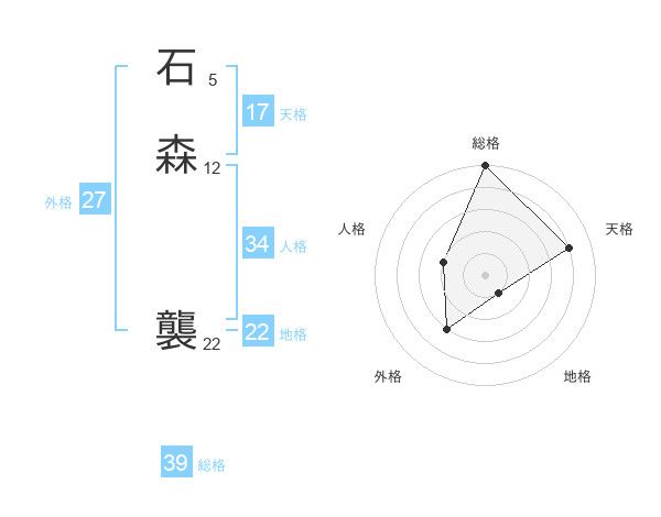 石森 襲さんの総格は39画の5点!